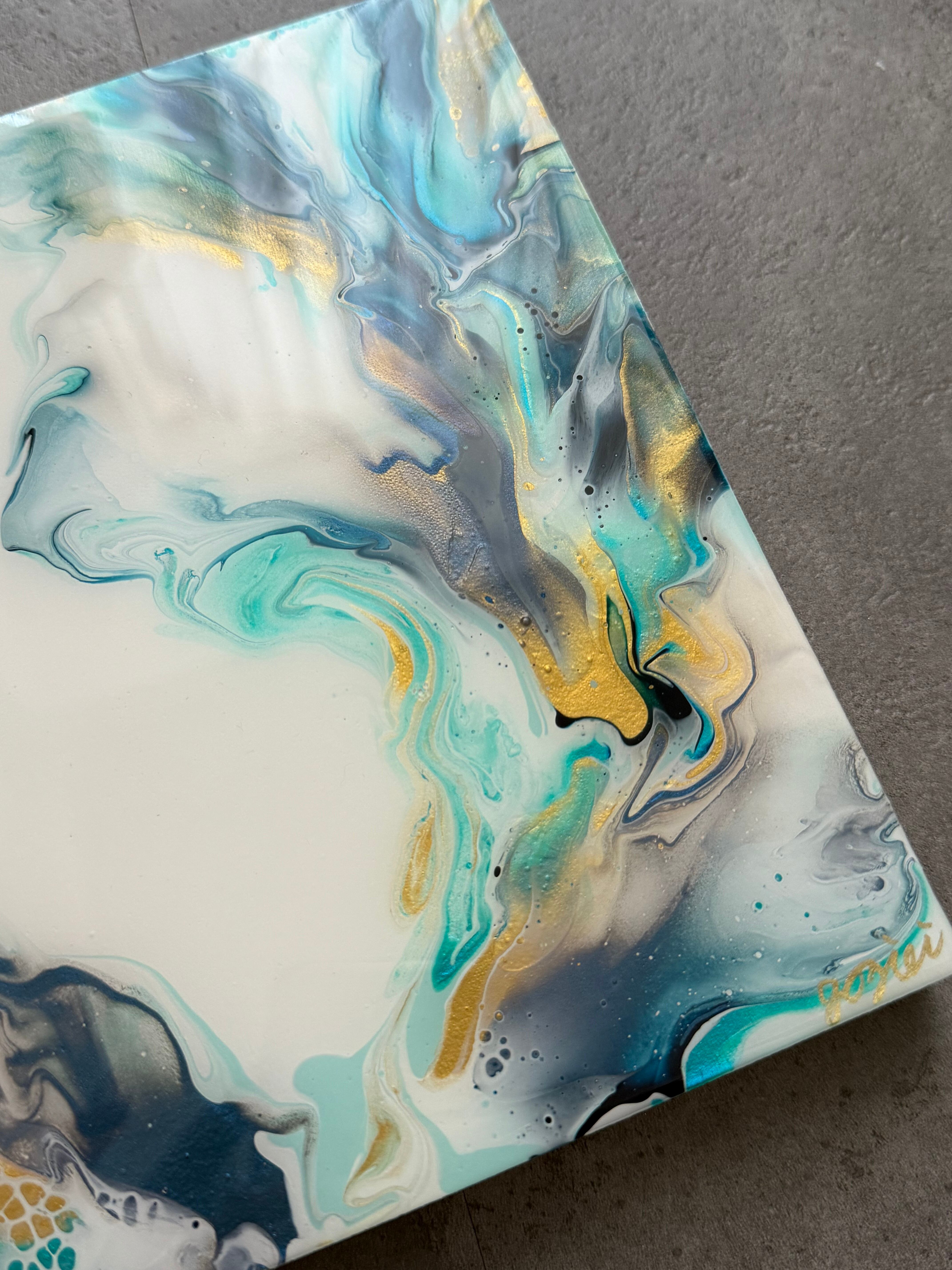咲く No.6 アート 抽象画 【20×20cm】 木製パネル、レジンコーティング、前面サイン